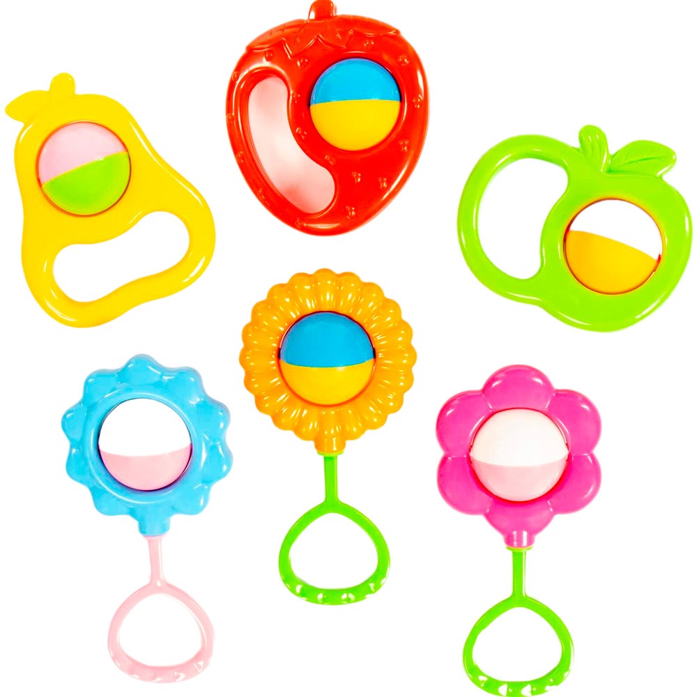 Фигурки в виде фруктов и цветов порадуют ребенка. Оригинальная погремушка - это замечательный подарок для малыша. Внутри корпуса перекатываются шарики, которые издают звуки. Удобная ручка обеспечивает надежный захват. Также можно использовать в качестве прорезывателя, поскольку погремушка выполнены из безопасных гипоаллергенных материалов. Подвижные элементы будут способствоваь развитию мелкой моторики, а цветные детали - зрительному восприятию.