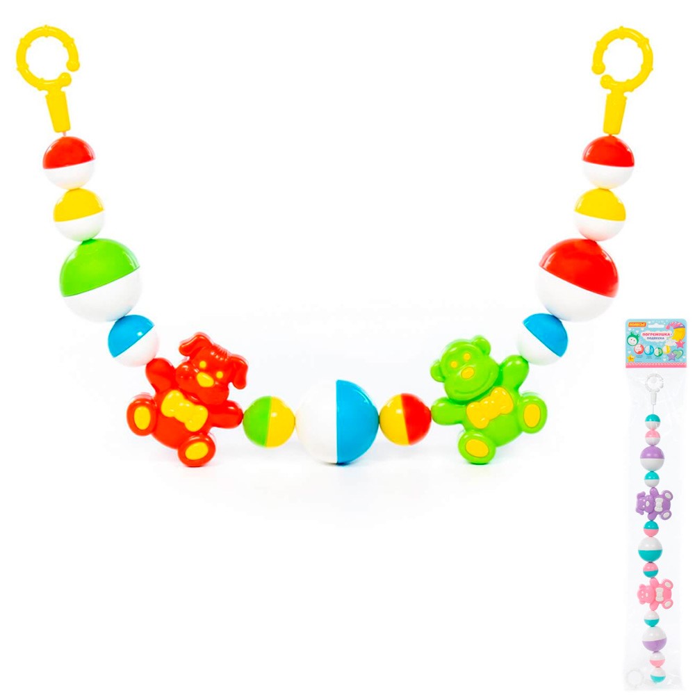 Красочная подвеска с яркими шариками и фигурками животных - это замечательный подарок для малыша. Погремушку можно прикрепить на коляску или кроватку - для этого у нее предусмотрены с обоих концов специальные крепления. Она издает звук от находящихся внутри элементов. Игрушки оказывают огромное влияние на физическое, умственное, эмоциональное развитие маленьких детей, способствуют развитию речи и зрения. Малыш, лежа в кроватке, разглядывает игрушку, концентрирует на ней внимание, начинает тянуться за погремушкой и пробовать координировать свои движения, фокусирует взгляд на ярких цветах и начинает различать их. Разноцветная и функциональная игрушка своими