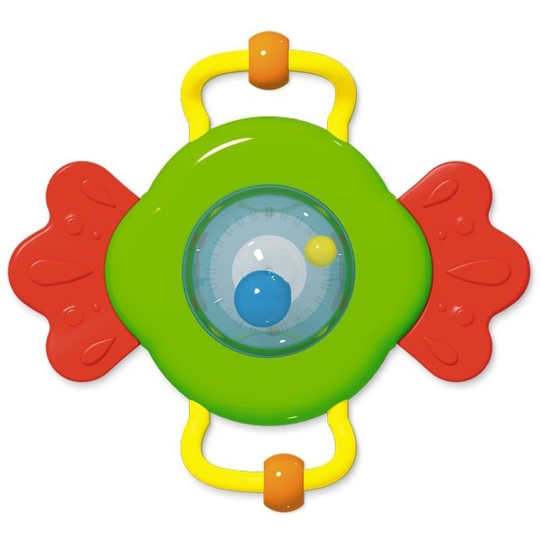 Форма, размеры и вес игрушки идеальны для захвата маленькими ручками. Ребенку будет удобно держать прорезыватель-погремушку, крутить, переносить с места на место, как это любят делать маленькие непоседы. Внутри «Батискафа» находятся два ярких шарика. Большой двигается по центру, а маленький ловко перемещается по всей окружности сферы. Благодаря такому эффекту малыш учится концентрировать внимание на конкретном предмете. С обратной стороны погремушки расположено небольшое зеркальце со множеством маленьких шариков, которыми можно любоваться долгое время и наблюдат