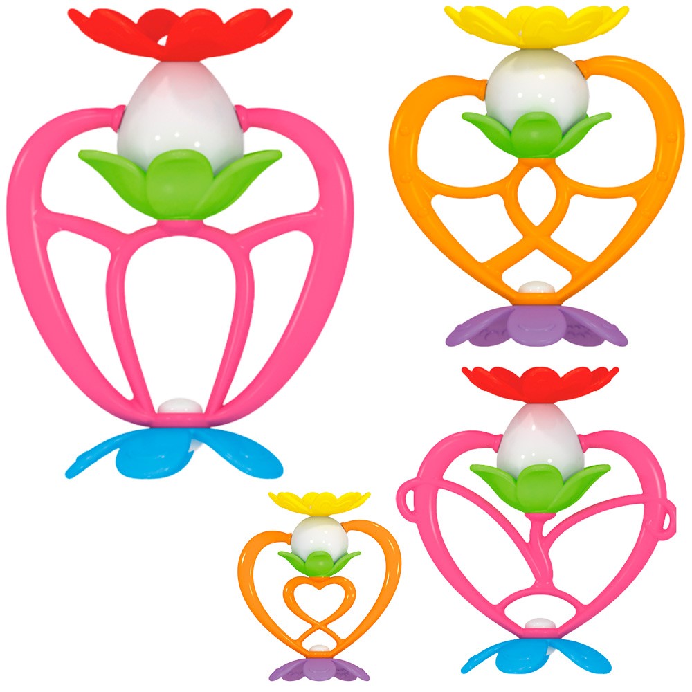 Разнообразные формы и цвета способствуют развитию зрительной координации и мелкой моторики рук ребенка, а издаваемые игрушкой звуки активно стимулируют его слух.
