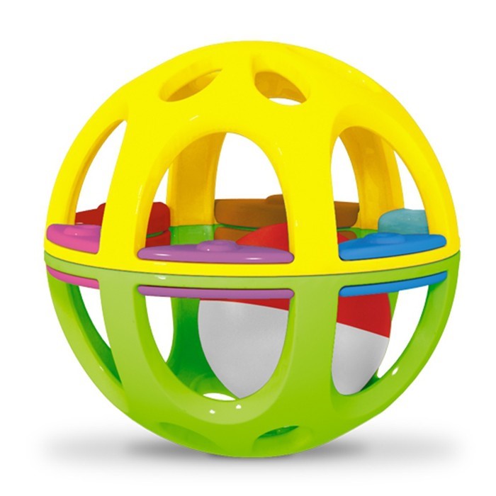 Игрушка выполнена в виде мягкой сферы с фигурными отверстиями. При перекатывании или потряхивании игрушка издаёт приятные звуки. При сжатии, благодаря мягкой структуре шар возвращается в форму идеальной сферы, что непременно понравится малышам.