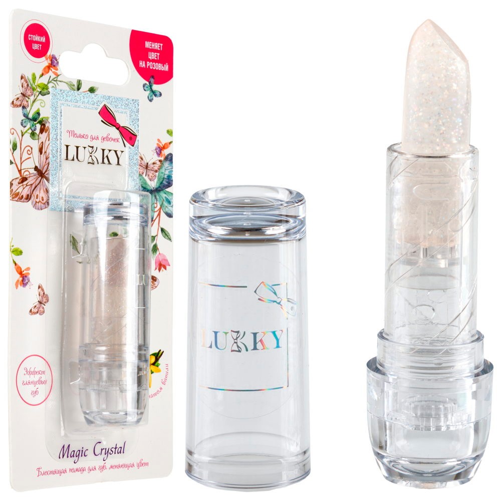 Помада блестящая меняющая цвет на розовый, цвет прозрачный с блестками, с ароматом ванили, 3,4 гр Т23518 Lukky