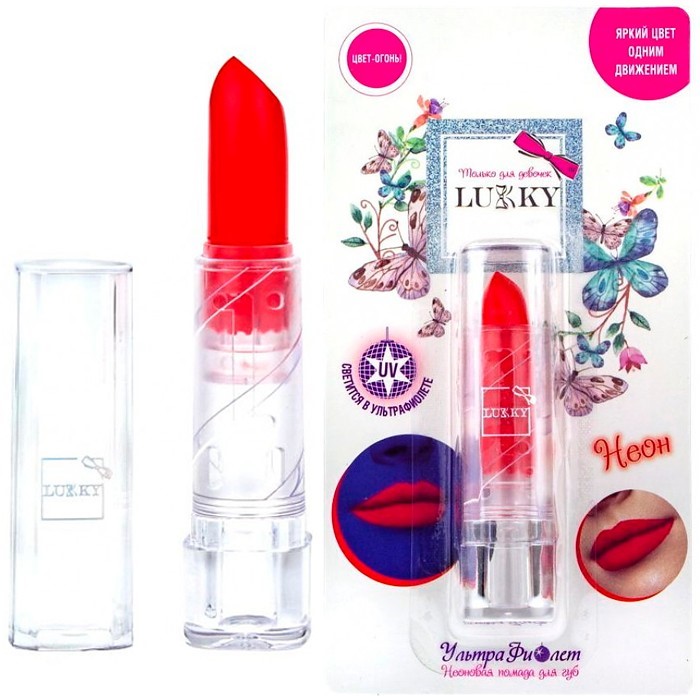 Неоновая помада для губ Lukky УльтраФиолет создана специально для девочек, которые любят красить губы, подражая старшим.