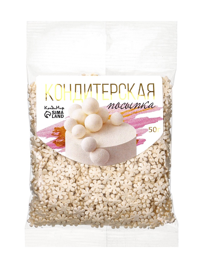 Посыпка кондитерская «снежинки перламутровые», белые, 50 г (комплект 2 шт)