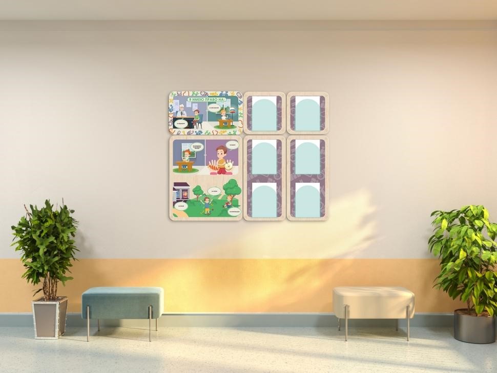 Как совместить полезные материалы для образования детей и стильный дизайн стен – эту задачу отлично реализуют информационные стенды «Права ребёнка», которые можно размещать на стенах коридоров и холлов в детских садах и организациях дополнительного образования. Яркие доступные картинки понятны для детей, а печатные сведения в прозрачных органайзерах – для их родителей.