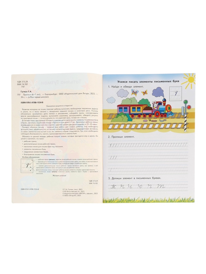 Прописи — это пособие для детей 6–7 лет, разработанное Татьяной Гутман. Мягкий переплёт и удобный формат делают его практичным для занятий дома или в подготовительных группах.