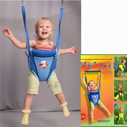 Детский развивающий оздоровительный тренажер с жестким каркасом три в одном (прыгунки, качеля, тарзанка) в подарочной упаковке.