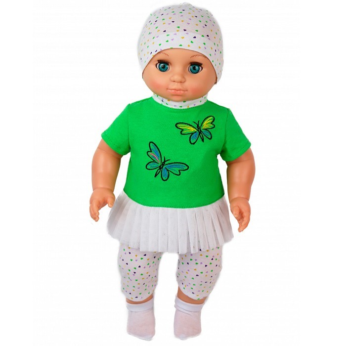 Пупс Весна 14 - очаровательная кукла из серии «Малыши и малышки», одетая в трикотажная однотонную тунику с короткими рукавами и вышивкой «Бабочки»; трикотажные разноцветные бриджи длиной чуть ниже колена, шапочку с отворотом по низу и бантиком спереди сбоку на отвороте и трикотажные носочки. Выполнена кукла в образе малышки с милым личиком, детскими припухлостями и ясными глазками, благодаря чему обязательно понравится ребенку. С таком пупсом можно придумывать бесчисленное множество игр, например, играть в "дочки-матери", развивая навыки забыты о близких и ответственность, его можно укладывать спать, садить и переодевать, словно настоящего малыша.