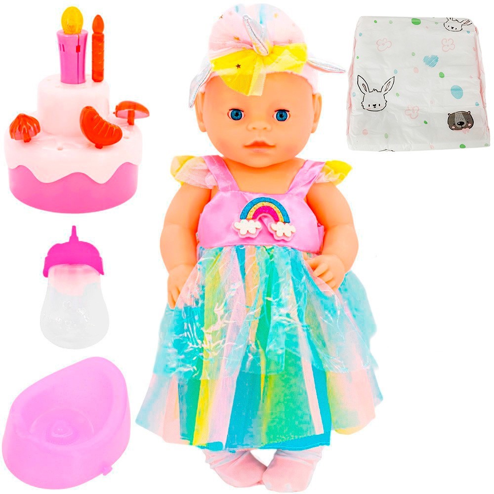 Комплектация: кукла, бутылочка, горшок, торт, памперс