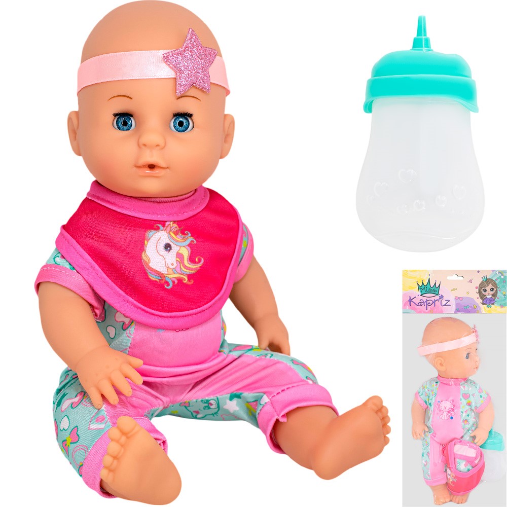 Комплектация: пупс – 1 шт., нагрудник – 1 шт., – 1 шт., бутылочка для кормления – 1 шт.