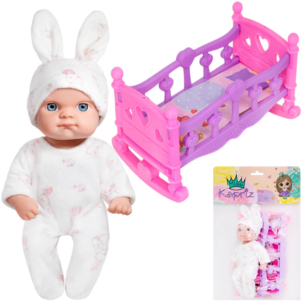 Пупс Miss Kapriz MK2408K-C 21 см с кроваткой в пак.