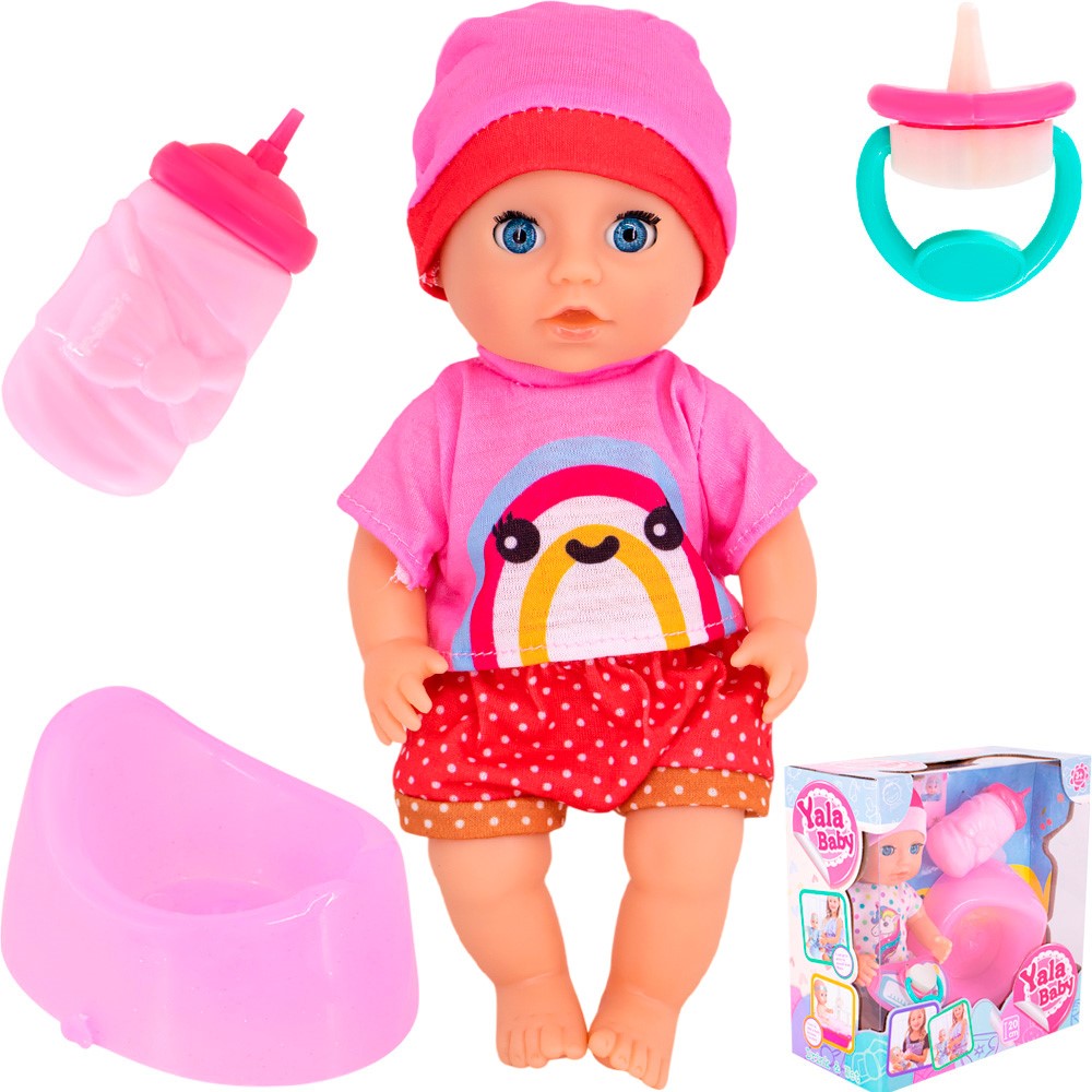 Комплектация: пупс - 1 шт, аксессуары: бутылочка - 1 шт, соска - 1 шт, горшок - 1 шт