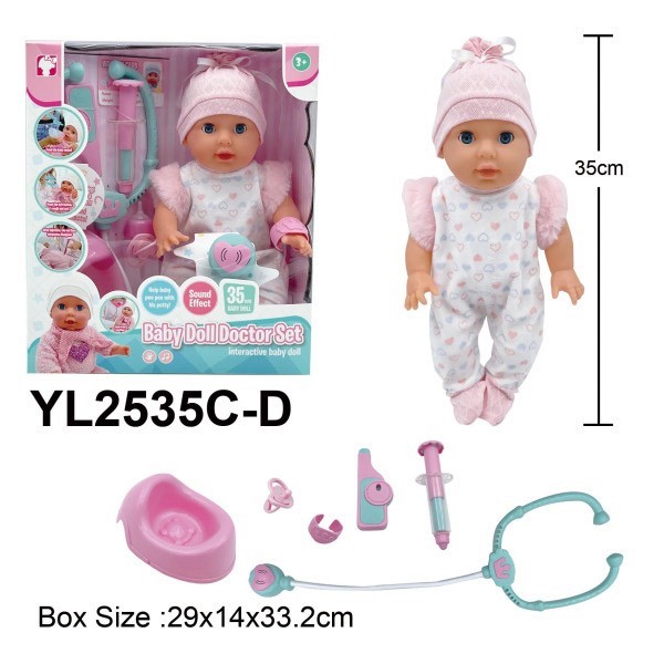 Пупс YL2535C-D 35 см, с аксесс, в кор.