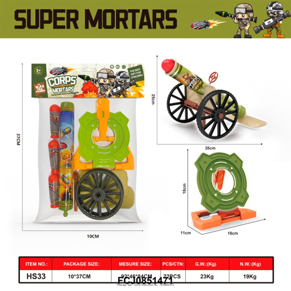 Размер изделия: пушка 35 х 25, мишень 18 х 11 х 18 см, снаряд 10 см