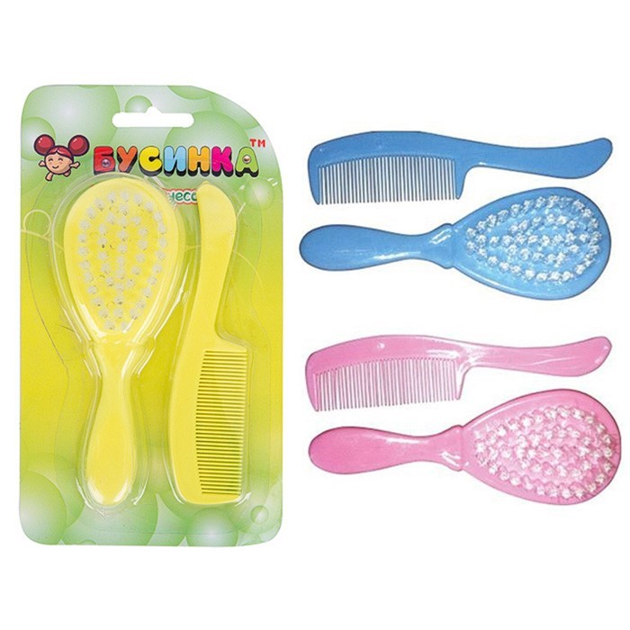 Набор состоит из прямой расчески и щетки для волос. Он предназначен для малышей с рождения. Мягко и бережно расчесывает волосы и массирует кожу головы. Расчески обеспечат качественный, простой и безопасный уход за волосами малыша. Гребешок с частыми зубчиками хорошо удаляет (при необходимости) себорейные корочки. Зубчики гребешка имеют на концах шарики, чтобы не нанести повреждения на кожу головы ребенка. Щетинки щетки мягкие и приятные на ощупь.