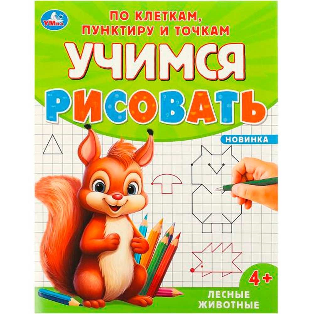 Раскраска 9785506095996 Лесные животные. Учимся рисовать по клеткам, пунктиру и точкам