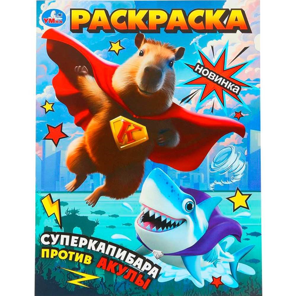 Раскраска «Суперкапибара против Акулы» ТМ «УМка» - отличный подарок для юных художников.