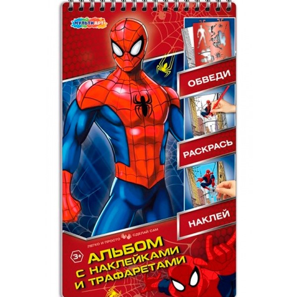 Раскраска Альбом с наклейками и трафаретами Спайдер MultiArt ALBUM-SP128132