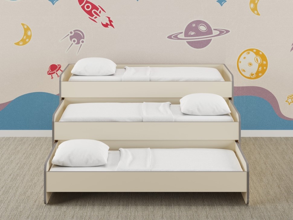 Раздвижная кровать из коллекции «НЕГА» — это удобное и функциональное решение для спальной зоны детского сада. Трехсекционная конструкция позволяет легко раздвигать спальные места, создавая комфортные и безопасные условия для сна детей и оптимизируя пространство группы.
