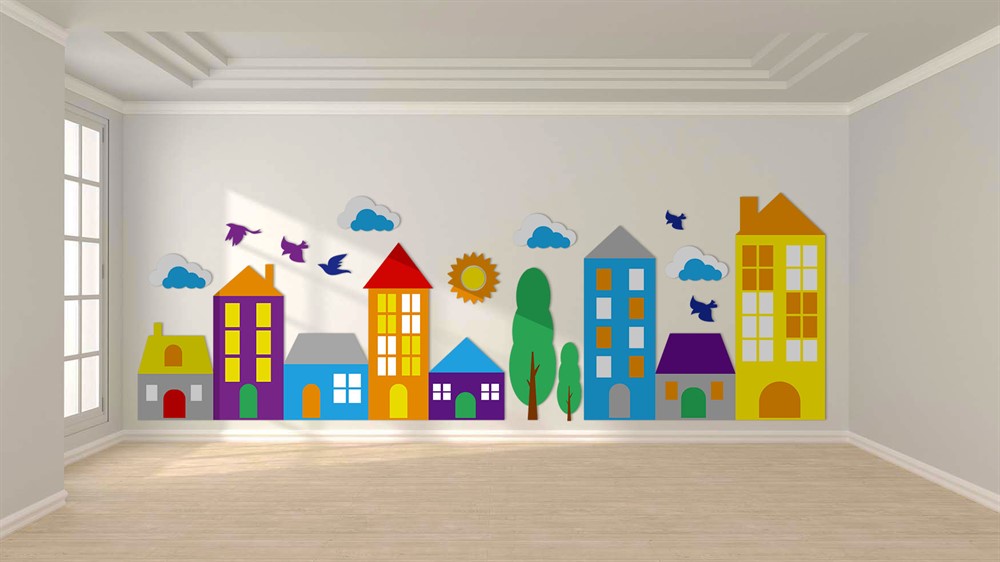 Развивающая настенно-напольная панель мобильная "Город", комплект