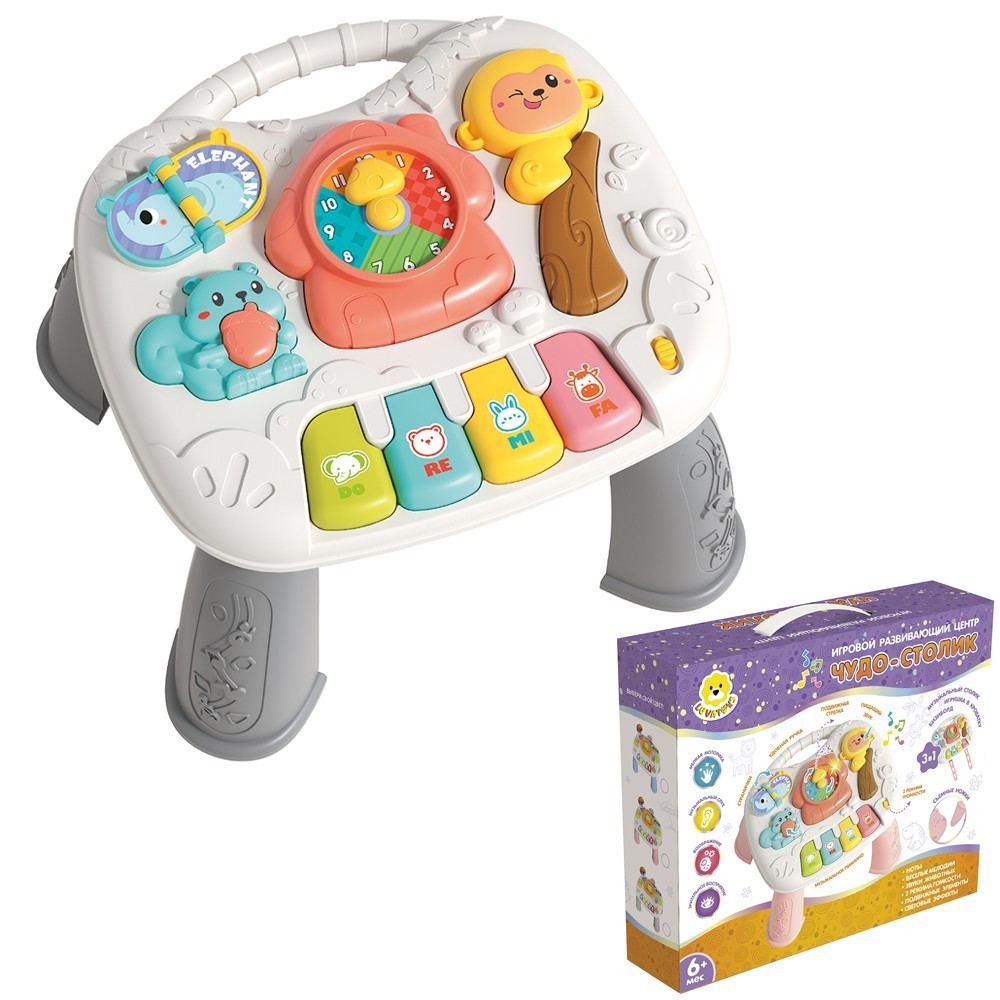 Развивающий центр Levatoys MK368-24B Чудо-столик Часы серый в кор.