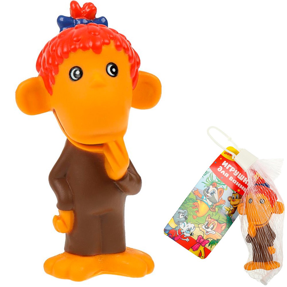 Внешний вид мартышки полностью соответствует знаменитой обезьянке из советского мультфильма "38 попугаев". С такой игрушкой малыш точно не заскучает во время купания, ведь она яркая, забавная и с ней можно придумывать очень много веселых игр. Материал, из которого изготовлена игрушка, нетоксичен и безопасен, не боится воды и загрязнений.