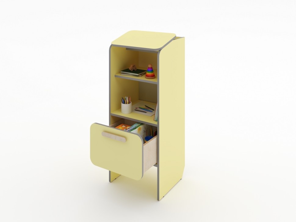 Столик выполнен из ЛДСП с безопасными скругленными краями. Этот материал сочетает прочность и долговечность с удобством в эксплуатации: фасады из ЛДСП отличаются насыщенными и яркими цветами, которые делают мебель выразительной и добавляют интерьеру контрастность.