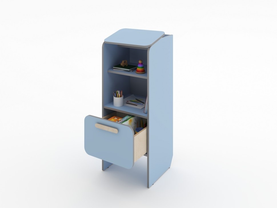 Столик выполнен из ЛДСП с безопасными скругленными краями. Этот материал сочетает прочность и долговечность с удобством в эксплуатации: фасады из ЛДСП отличаются насыщенными и яркими цветами, которые делают мебель выразительной и добавляют интерьеру контрастность.
