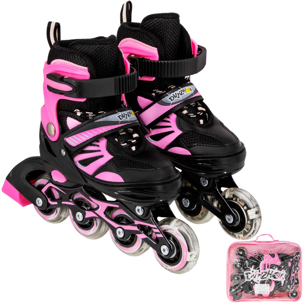 Ролики Dvizhok р. 30-33 раздвиж. PVC, 1 колесо со светом,черно-розовый 141V-218
