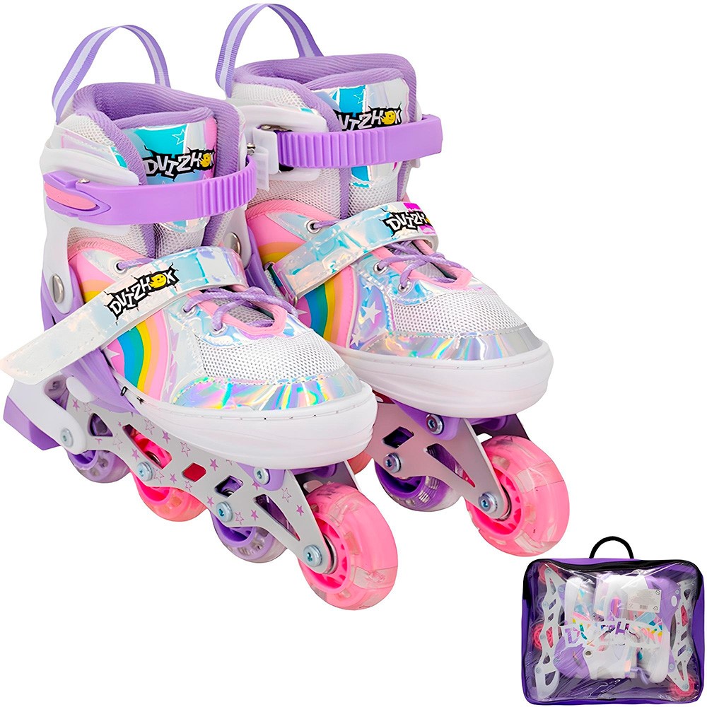 Ролики Dvizhok р. M 34-37 раздвиж., свет 1 колеса, фиолетово-белый 141V-672-8