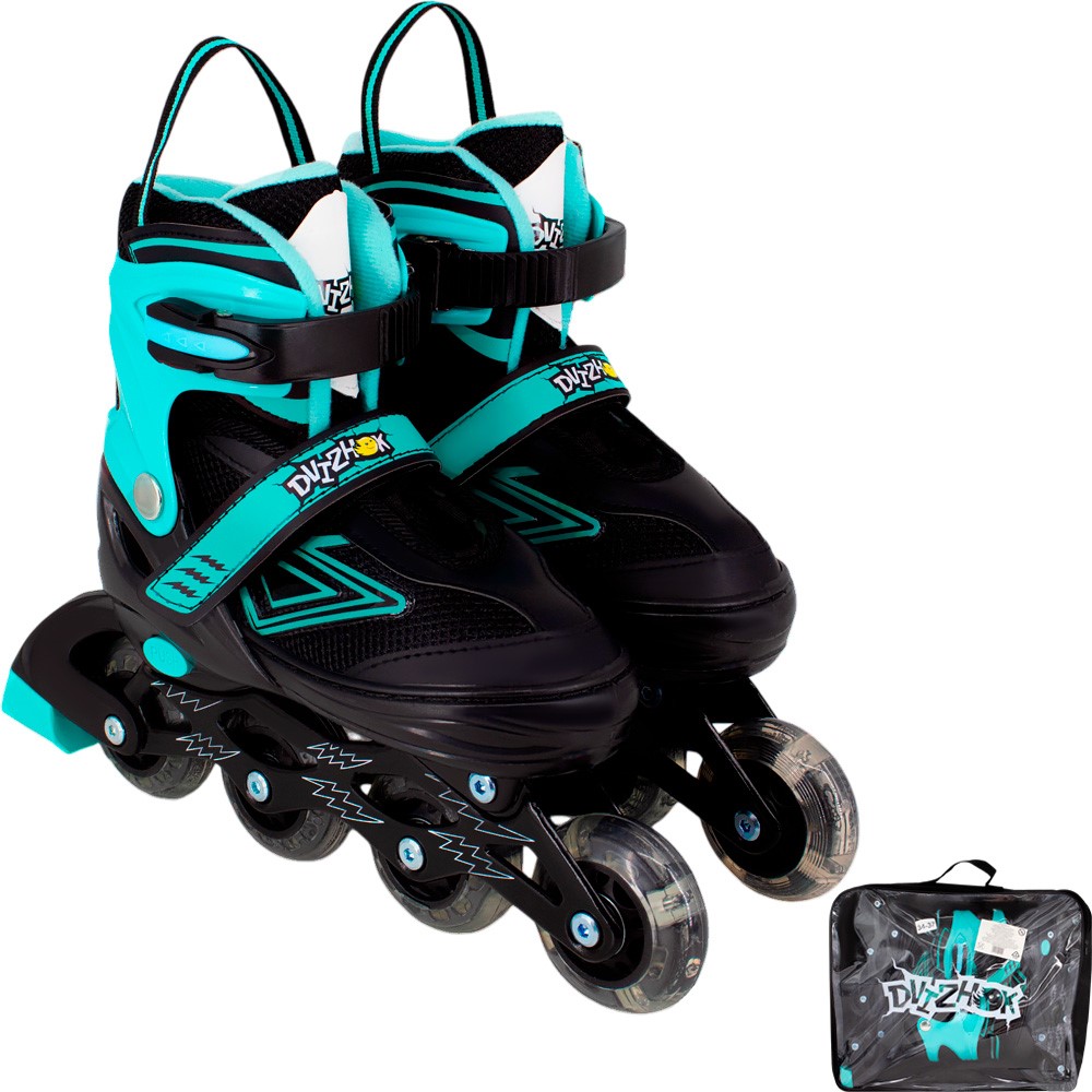 Ролики Dvizhok р. S 30-33 раздвиж., свет 1 колеса, черно-мятный 141V-671-1