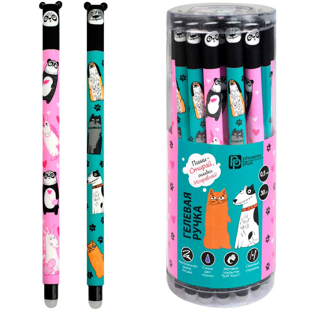 - чернила стираемые: для удаления надписи её необходимо потереть специальным ластиком, встроенным в корпус ручки;