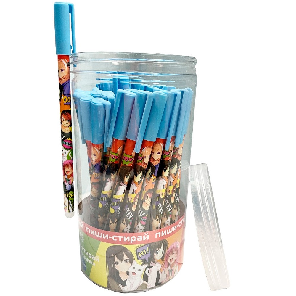 Ручка гелевая синяя прорезиненная Аниме "Подружки" со стираемыми чернилами 0,5 мм 70538