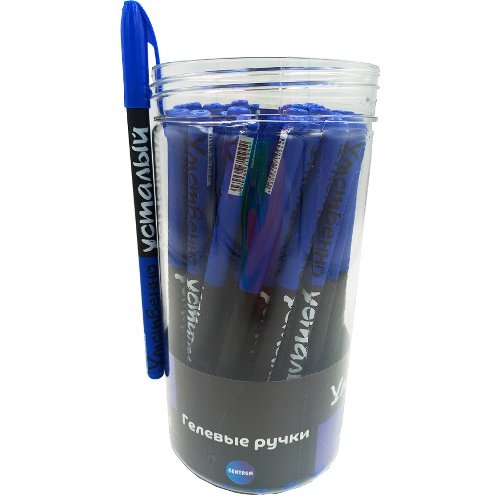 Ручка гелевая синяя прорезиненная УМСТВЕННО УСТАЛЫЙ, 0,7 мм 71094