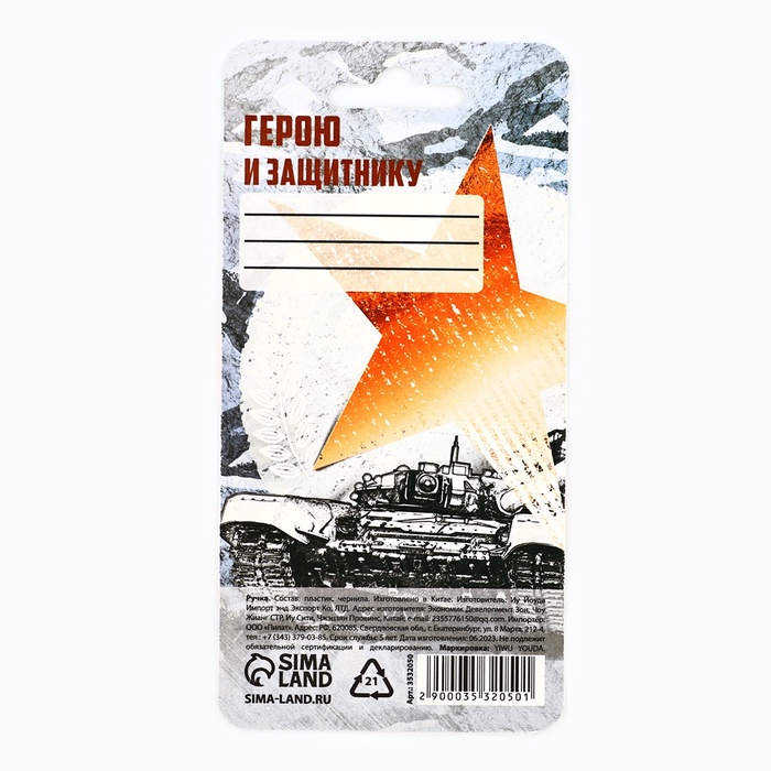 Ручка прикол, гелевая, синяя паста на подложке «Танк: 23 февраля»