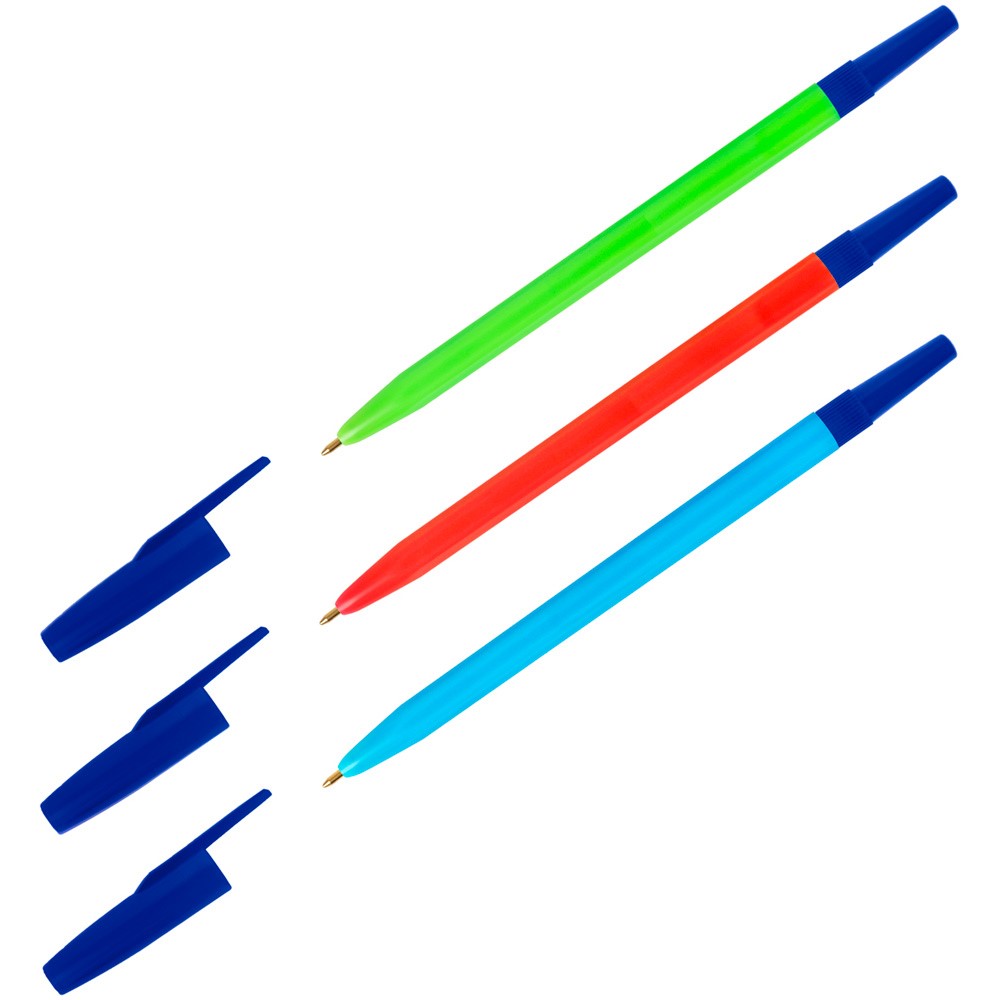 Ручка шариковая синяя 0,7мм СТАММ "049" неоновый микс 346456