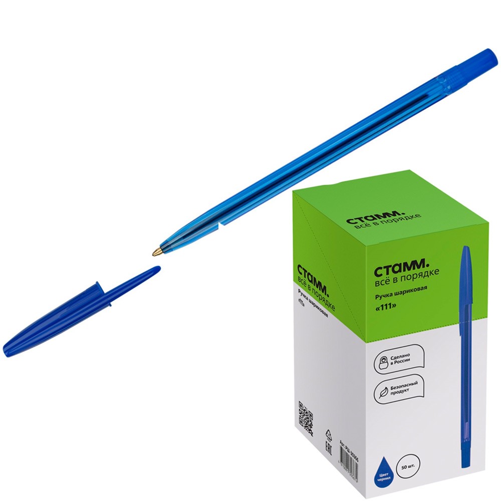 Ручка шариковая синяя СТАММ "111" 346463