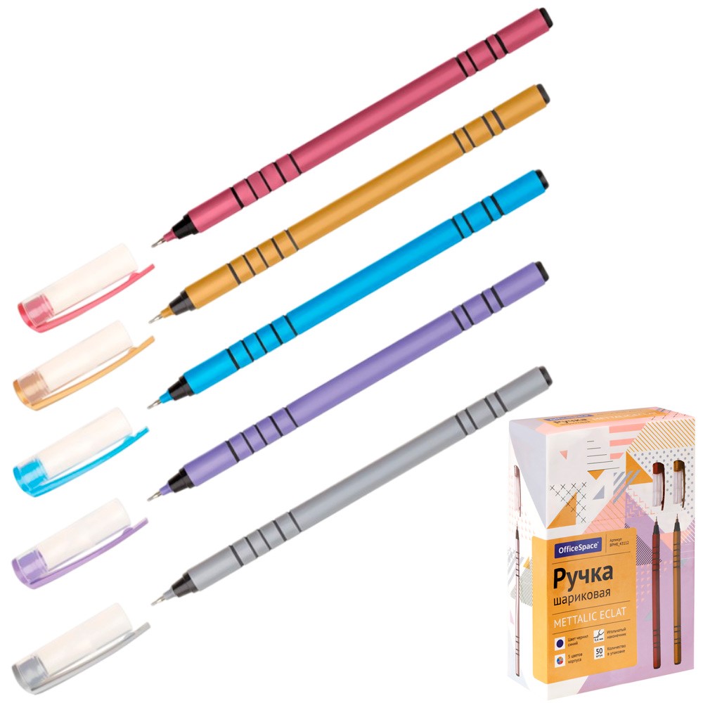Ручка шариковая синяя OfficeSpace "Mettalic ecla" 0.6мм 312034