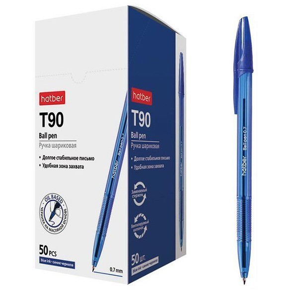 Ручка шариковая синяя на маслянной основе 0,7мм Т-90 BP_062568 Hatber