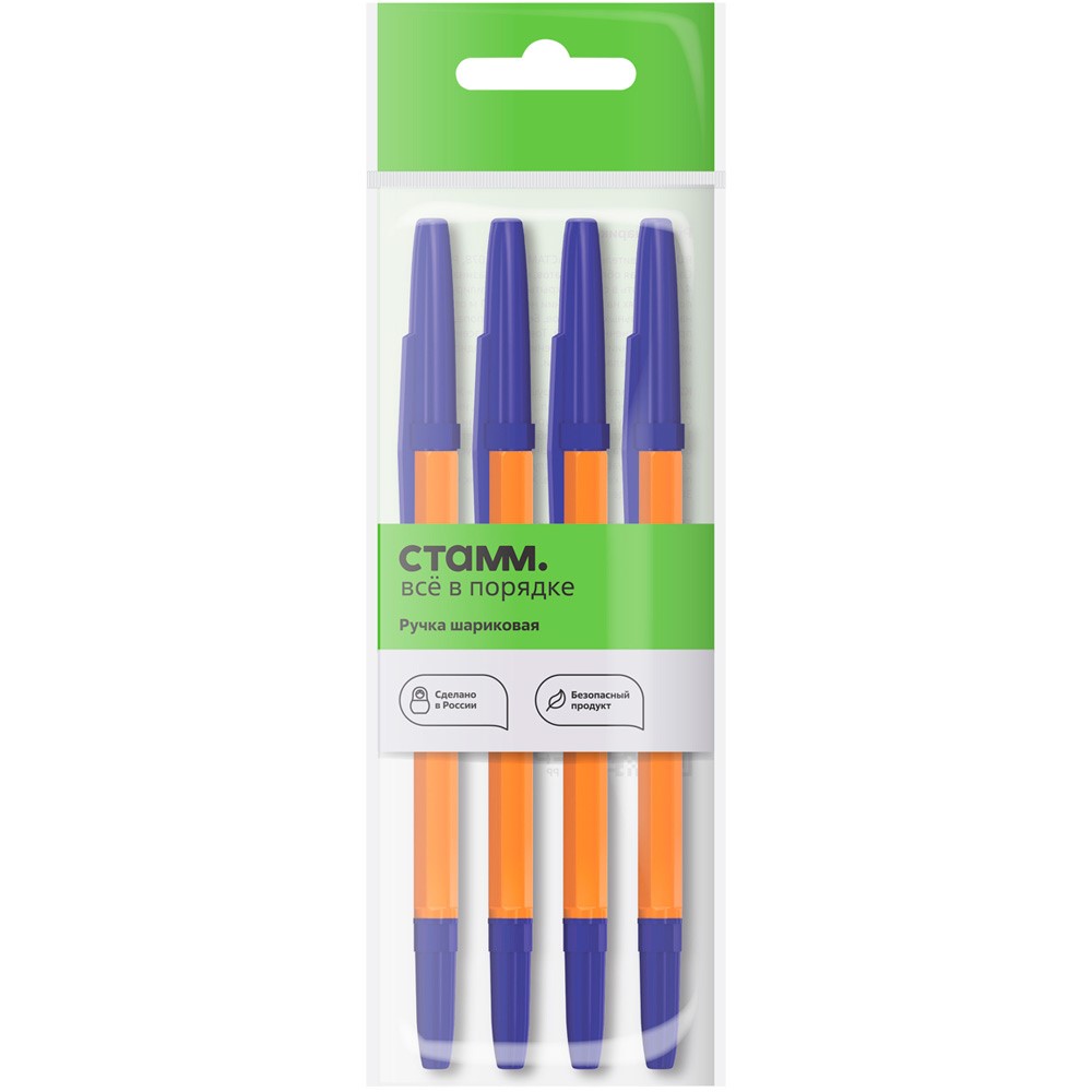 Ручка шариковая синяя "Оптима" 4шт., СТАММ 1,0мм 346493. СТОК
