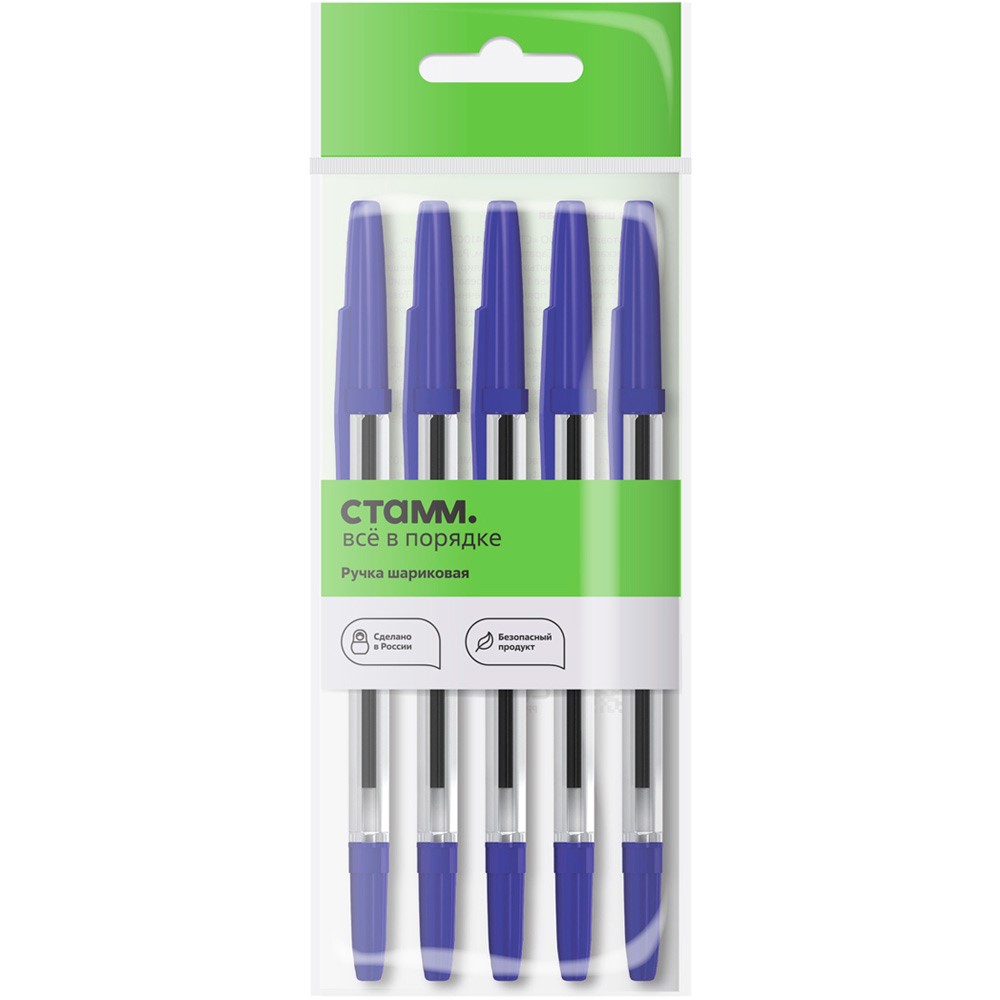 Ручка шариковая синяя "Оптима" 5шт., СТАММ 1,0мм 346496. СТОК