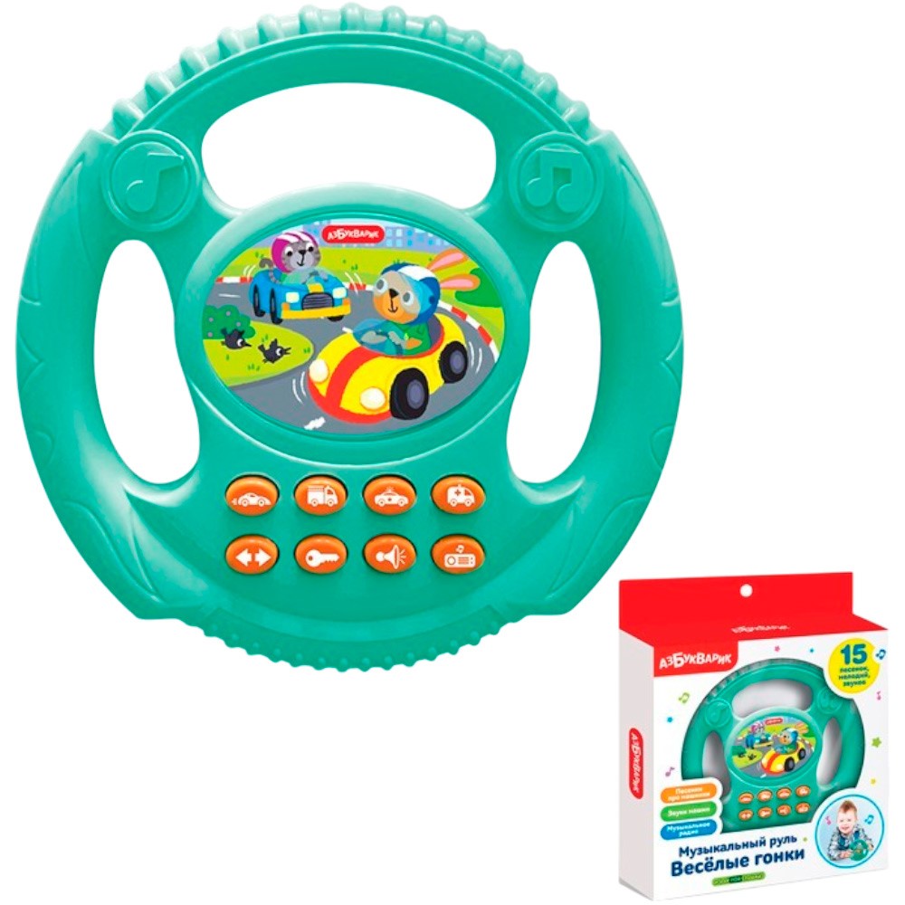 «Музыкальный руль. Веселые гонки» - отличный подарок для маленьких непосед! С этим рулем ребенок почувствует себя настоящим водителем! Нажимая на кнопочки, малыш сможет завести мотор, посигналить, включить сигналы поворота, послушать 4 песенки про машинки и музыкальное радио – 3 забавные мелодии. Игры с музыкальным рулем развивают у детей двигательную активность, слуховое восприятие и воображение.