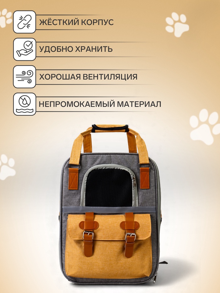 Рюкзак-переноска для кошек и собак, 30×21×41 см, серо-жёлтый