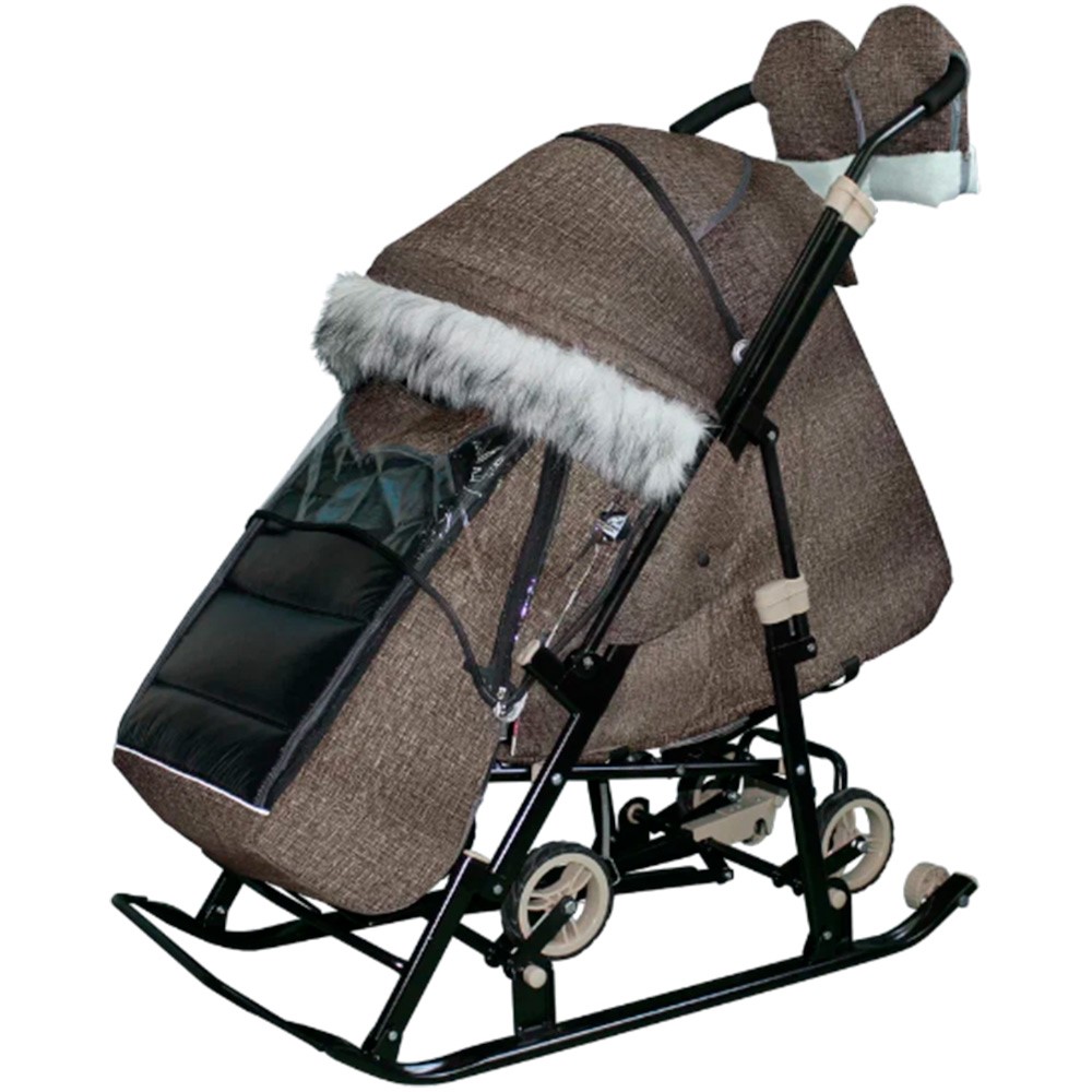 Санки коляска Galaxy Glory Gloss Лён крупный коричневый