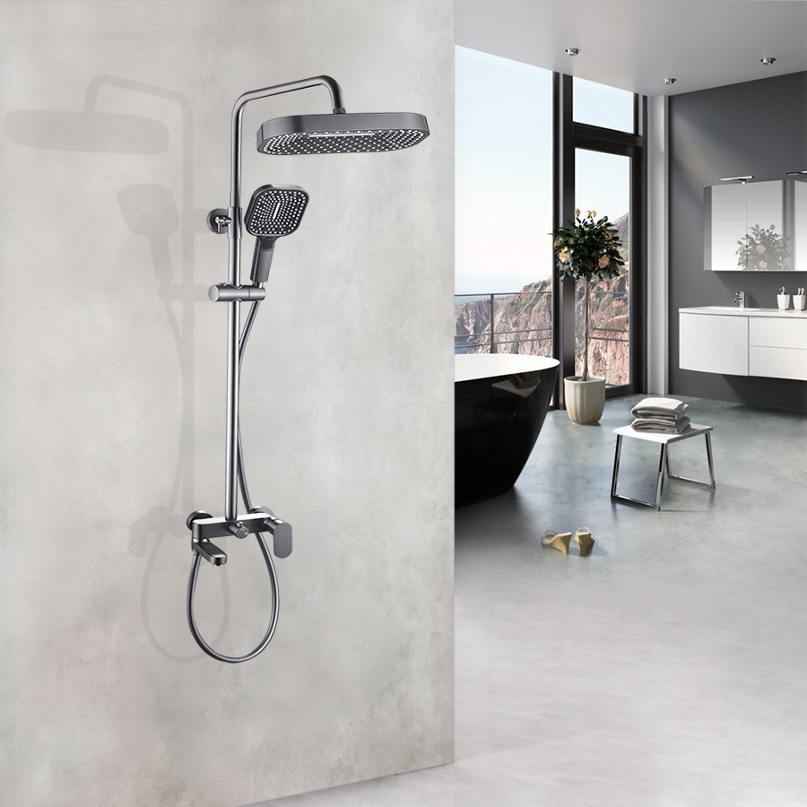 Salda Душевая стойка со смесителем ALS-615-14 Оружейная сталь