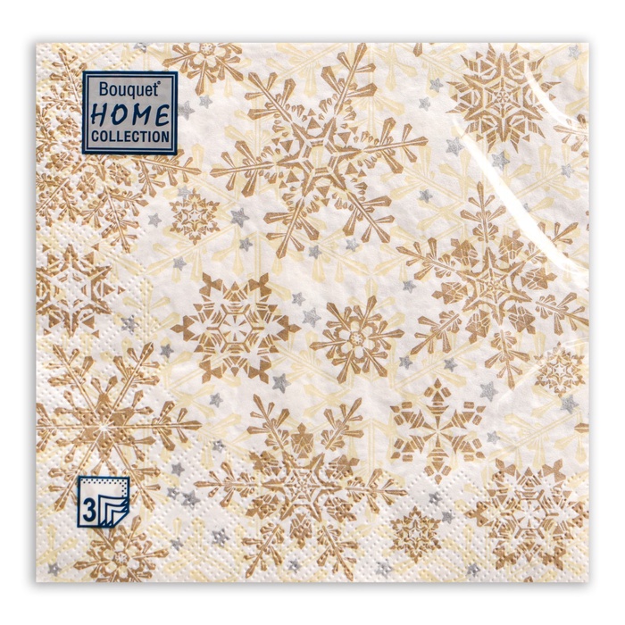 Салфетки новогодние бумажные Home Classic «Золотые снежинки на бежевом», 3 слоя, 33?33 см, 20 шт. (комплект 2 шт)