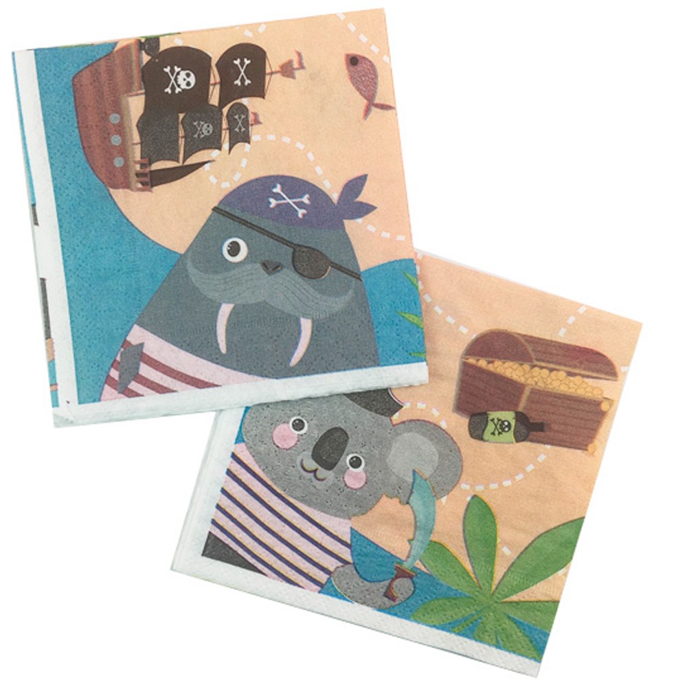 Бумажные салфетки с забавными пиратами идеально подойдут для праздничного мероприятия ребенка. Размер салфеток 24 х 24 см. Печать изображения качественная и четкая.