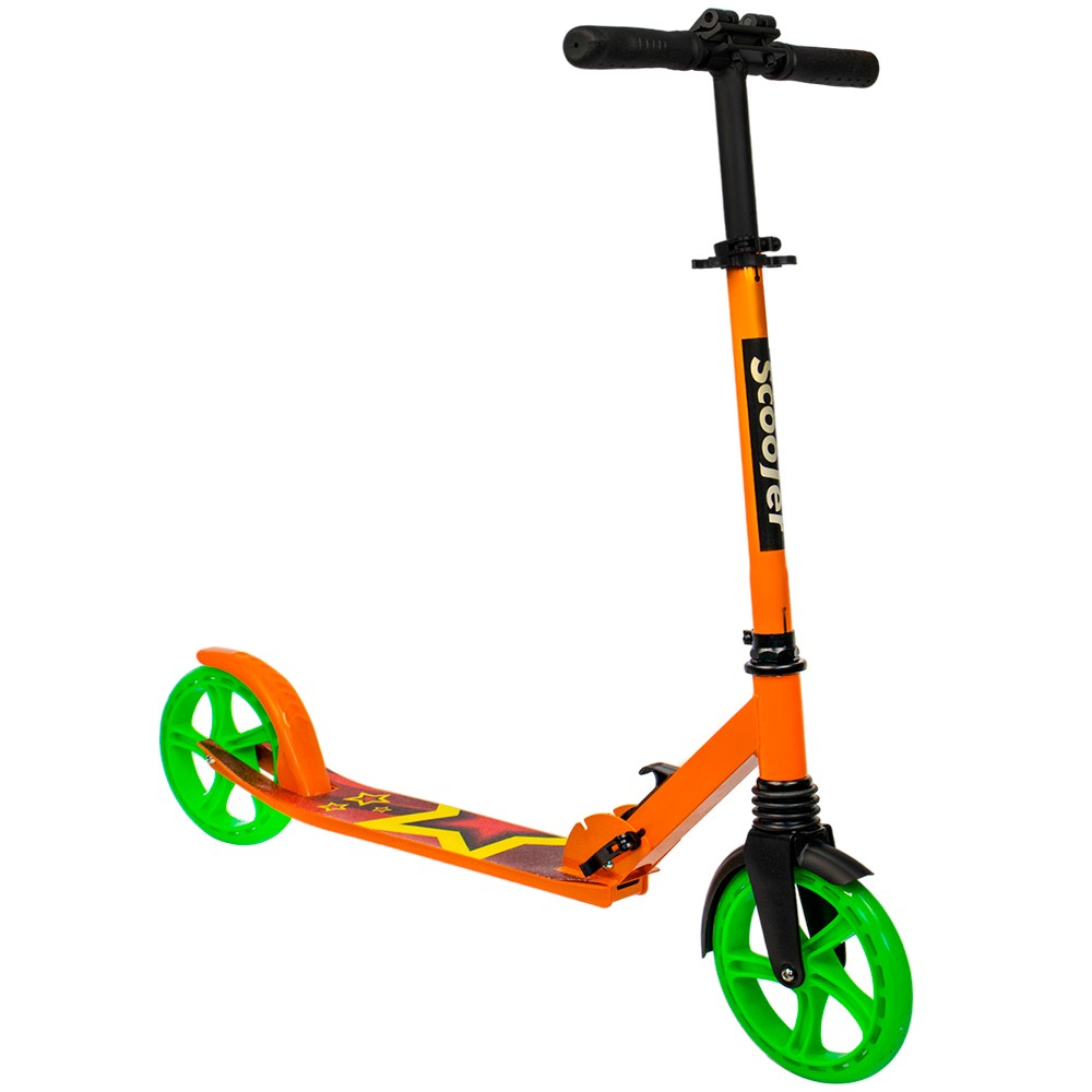 Стильный двухколёсный самокат с большими колёсами.