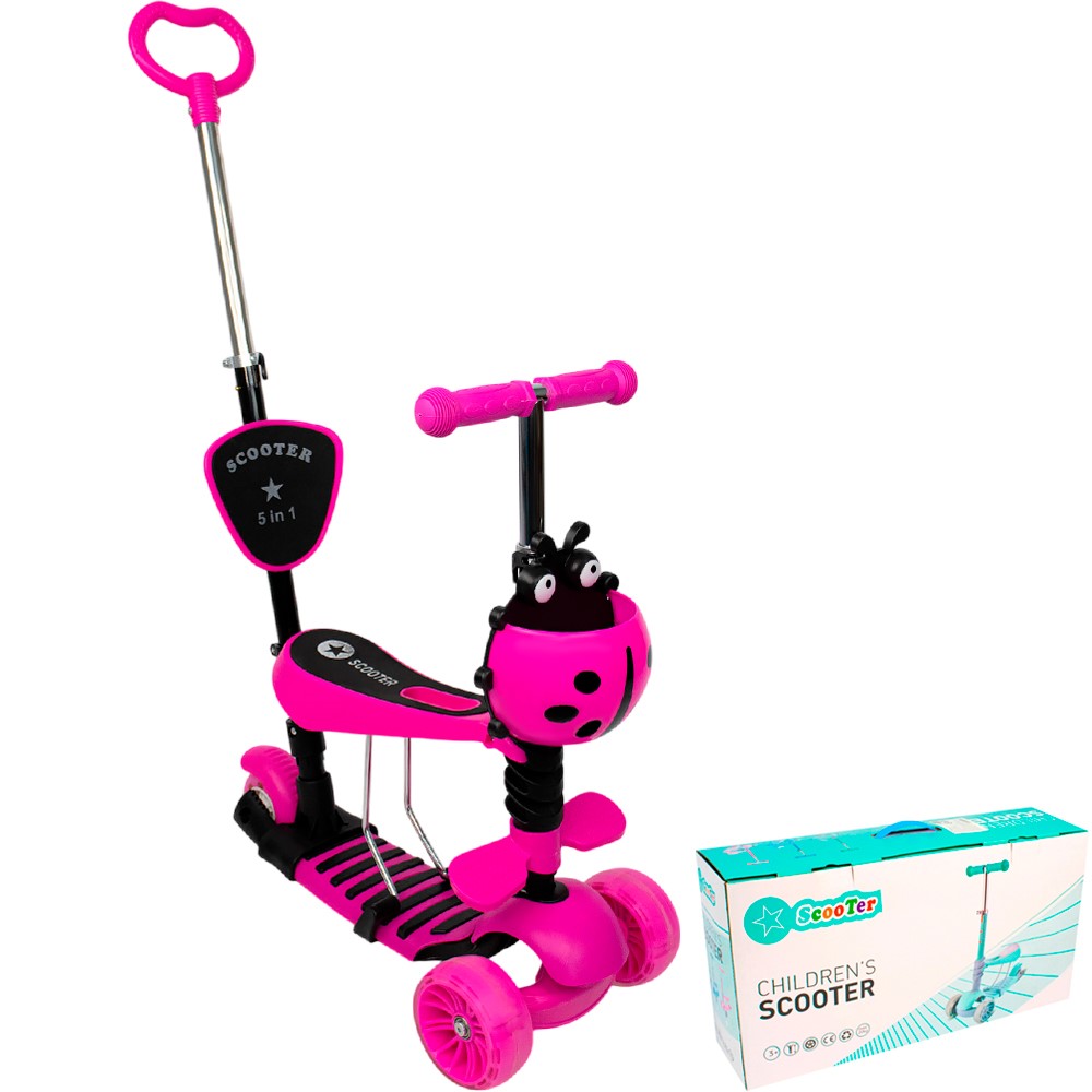 Комплектация: пластиковая дека - 1 шт, руль - 1 шт, пластиковая корзина с креплением - 1 шт, сидение - 1 шт, спинка сидения - 1 шт, металлическая подставка под сидение - 1 шт, родительская ручка - 1 шт, набор с креплениями - 1 шт