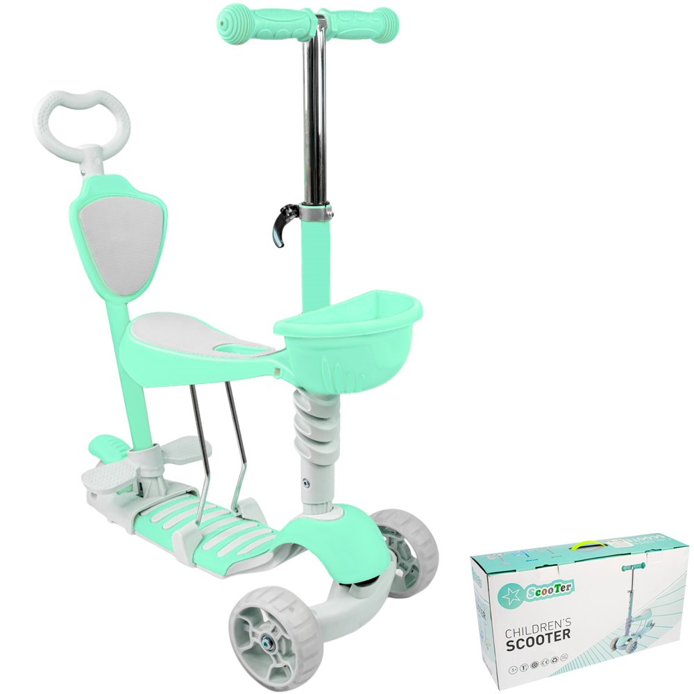 Комплектация: пластиковая дека - 1 шт, руль - 1 шт, пластиковая корзина - 1 шт, сидение - 1 шт, спинка сидения - 1 шт, металлическая подставка под сидение - 1 шт, родительская ручка - 1 шт, подножка - 1 шт, набор с креплениями - 1 шт